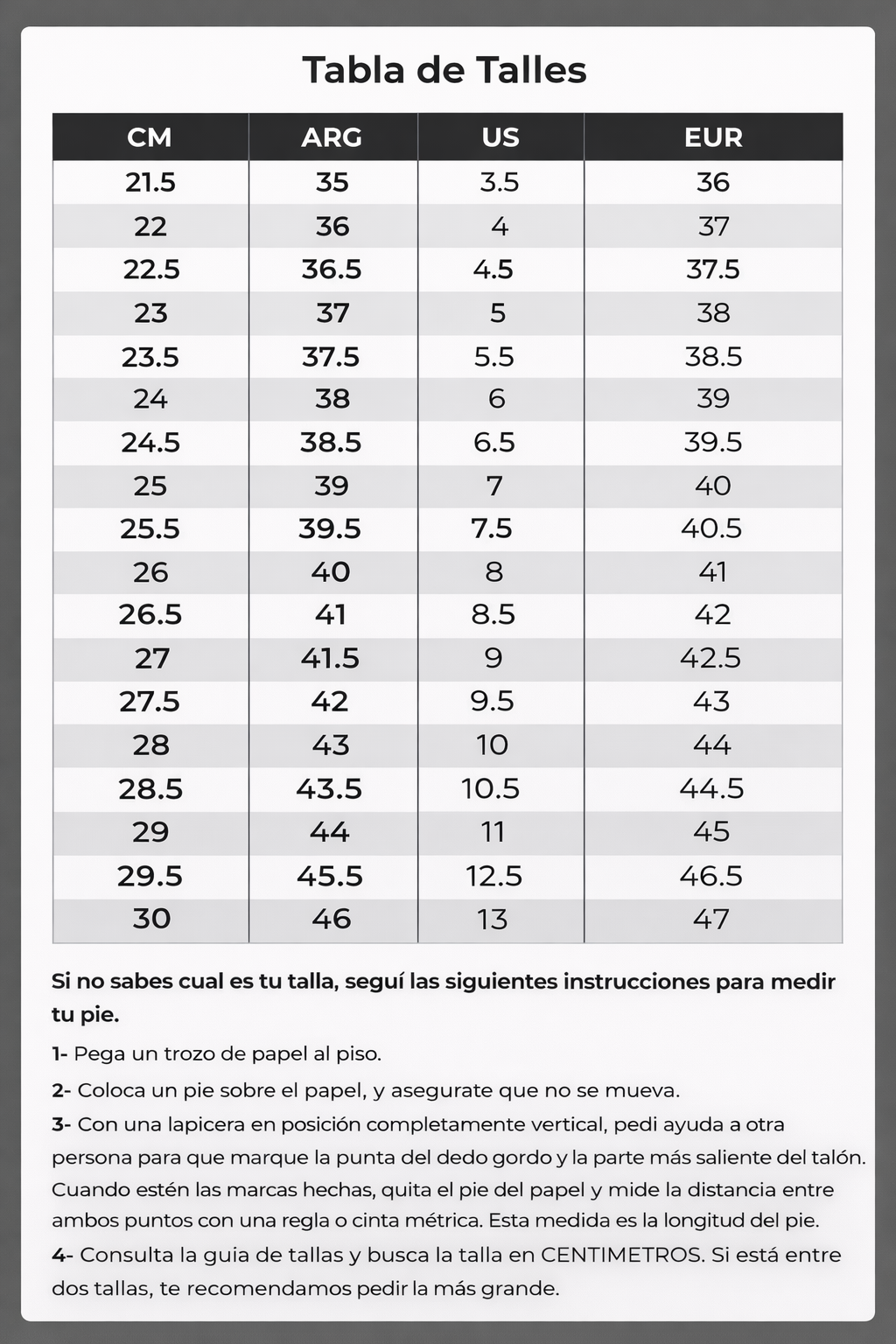 Guía de talles