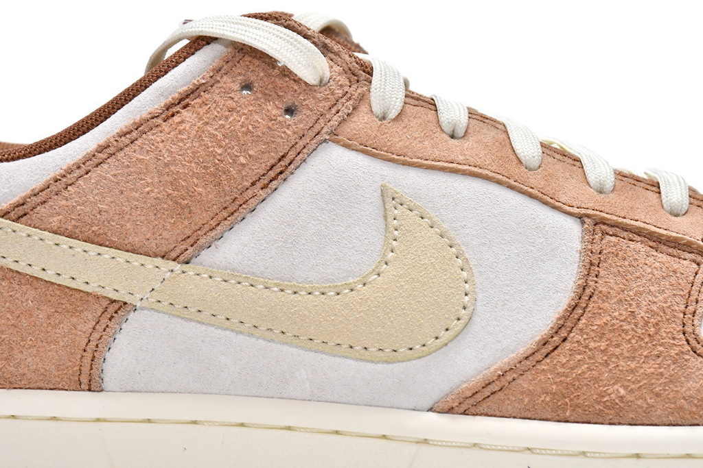 Las Nike Dunk Low Premium 'Medium Curry' visten la silueta retro con una parte superior de ante acabada en tonos cálidos y otoñales. Una base de color crema contrasta con las superposiciones de color marrón curry en la puntera y el talón, mientras que el color fósil se aplica al Swoosh y a la lengüeta del talón, esta última marcada con la tradicional marca Nike. La zapatilla baja se apoya en una suela de goma duradera, con un patrón de tracción adherente prácticamente idéntico al de otra zapatilla de mediados de los 80, la Air Jordan 1.