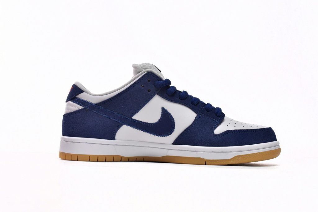Las Nike Dunk Low SB 'Los Angeles Dodgers' presentan colores y detalles que rinden homenaje a la histórica franquicia de la MLB. La parte superior de piel blanca contrasta con los revestimientos de ante azul real y el Swoosh textil a juego con costuras exageradas. Las etiquetas interiores de la lengüeta muestran un gráfico de una palmera en la zapatilla izquierda y el icónico cartel de bienvenida del Dodger Stadium en la derecha. Esta última zapatilla está marcada con un toque de color rosa en la suela de goma, imitando el aspecto del chicle pegado al talón.